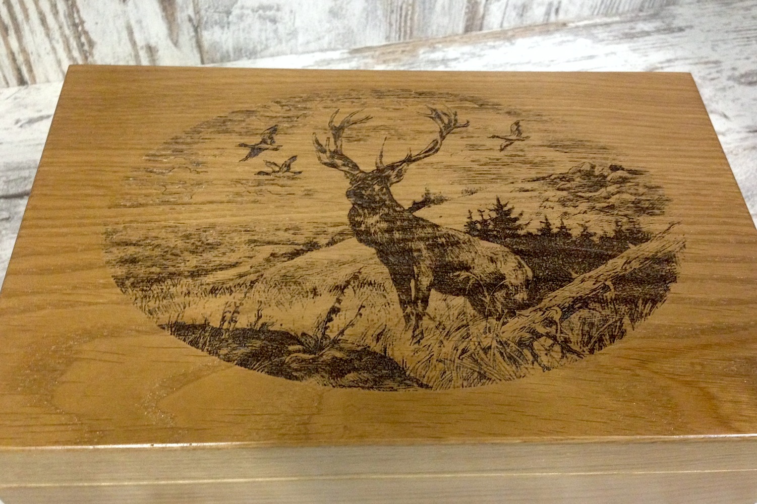 На кришці скриньки - картина, що написана українським художником спеціально для «Бара мисливця».