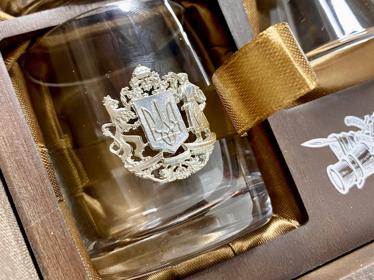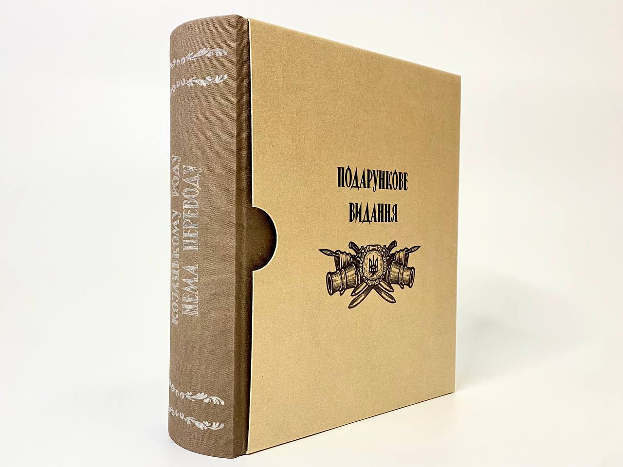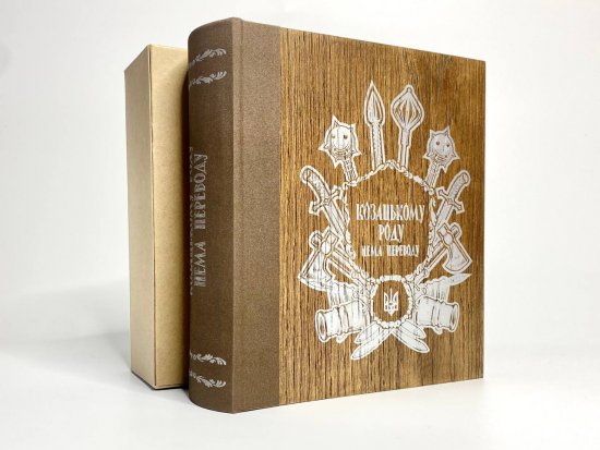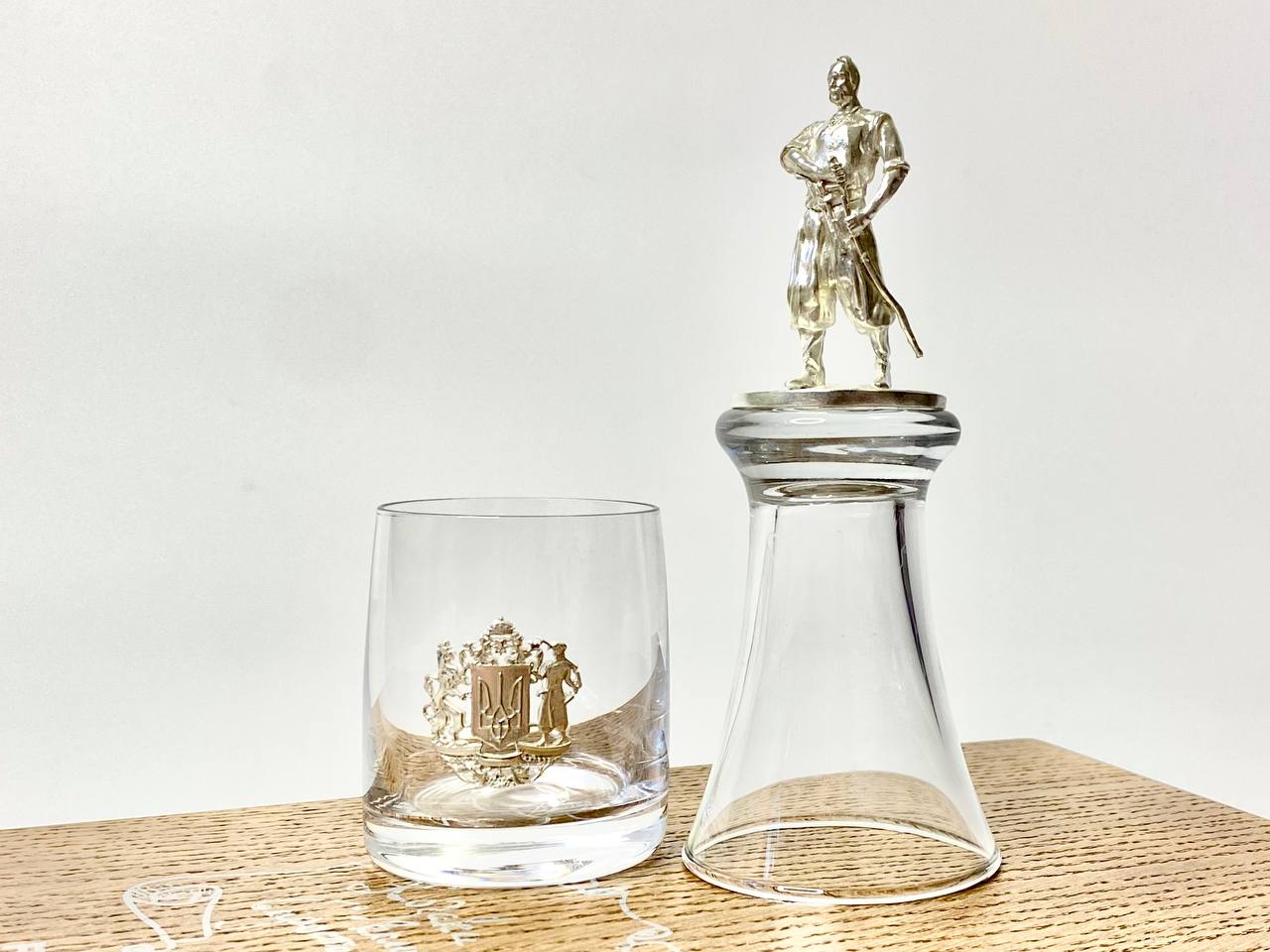Подарункове видання Книги-Бару «Козацькому роду нема переводу» - розкішний символічний подарунок для гостинного українця. Всередині розміщений набір із 6 чарок 50мл (BOHEMIA) з гладкою поверхнею, які видають прозорий звук при дотику та ідеально виблискують на світлі. Склянки декоровані об'ємними накладками із зображенням Великого