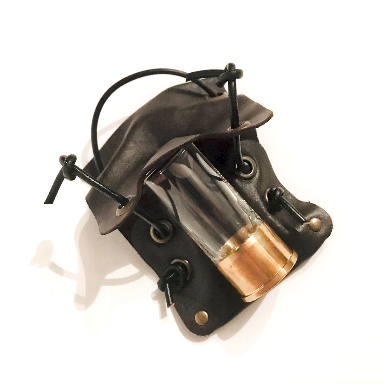 Чохла пошитий з натуральної шкіри (наппа), який технологічно перетворюється на акуратний мішечок. Шкіра найвищої якості, тому дуже м'яка. Зав'язується рантух ітлалійскою шкіряною мотузкою.
