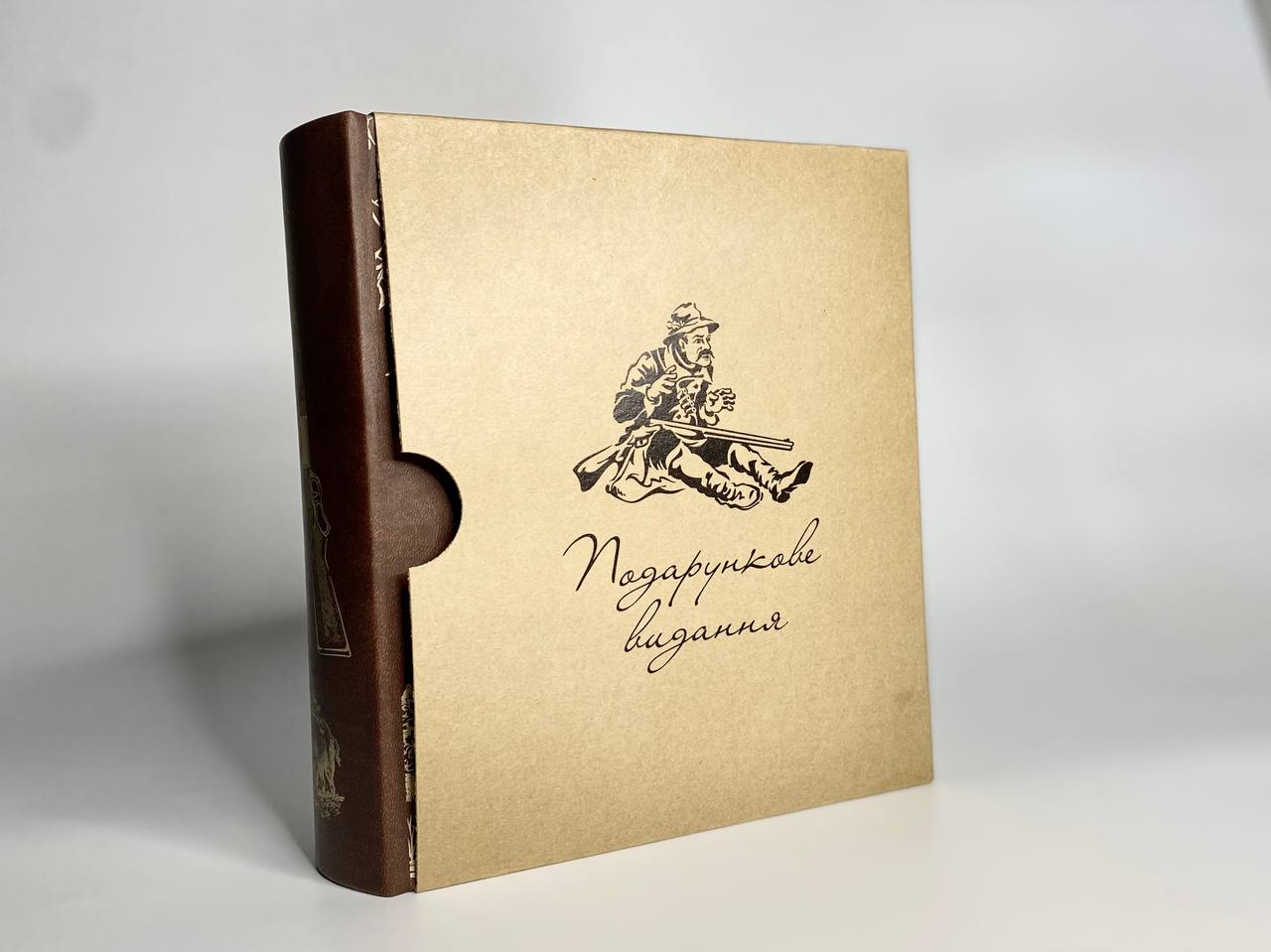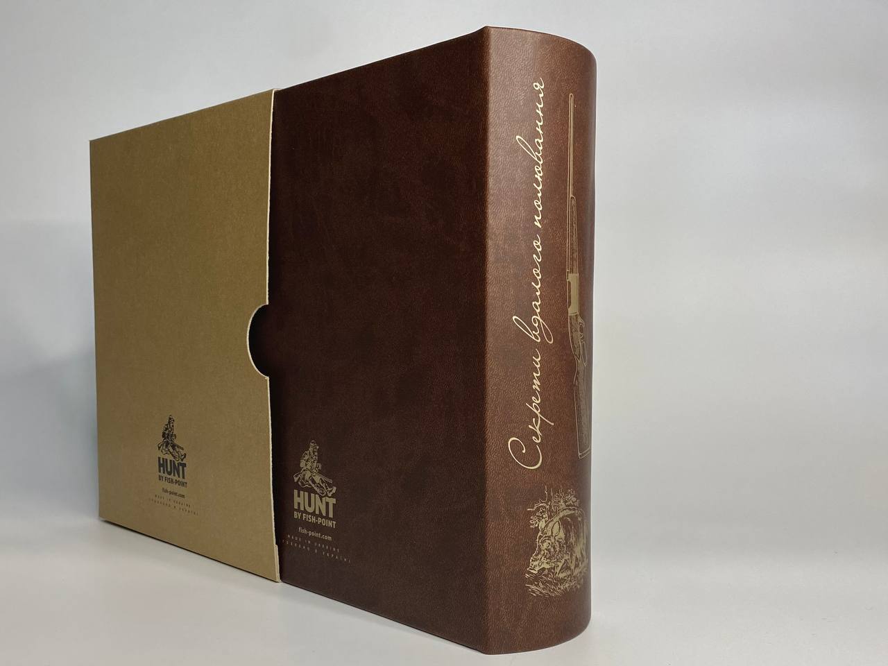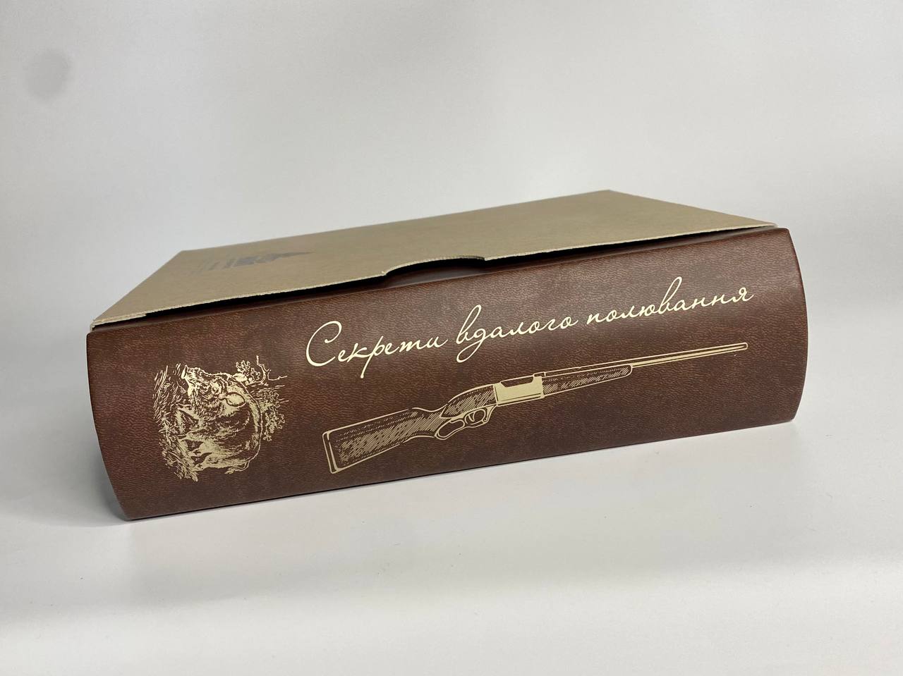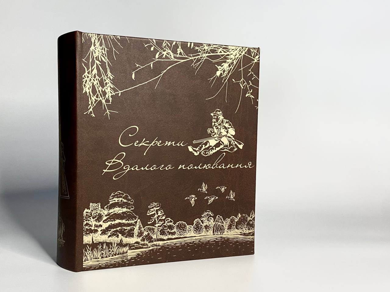 Нове подарункове видання "Секрети вдалого полювання" є елегантним і стильним подарунком для поціновувачів мисливської тематики. Набір складається з 6 чарок 50мл Bohemia та ексклюзивної «штрафної» чарки зі статуеткою мисливця, що натхненно розповідає про свої пригоди на полюванні. Родзинка штрафної в тому, що при наповнені її неможливо поставити. Лише до дна! Кожна чарка декорована різним художнім елементом з бронзи у вигляді бажаних мисливських трофеїв: олень, заєць, кабан, фазан, качки, спанієль з фазаном. Обкладинка книги виконана з екошкіри та прикрашена мисливськими мотивами.