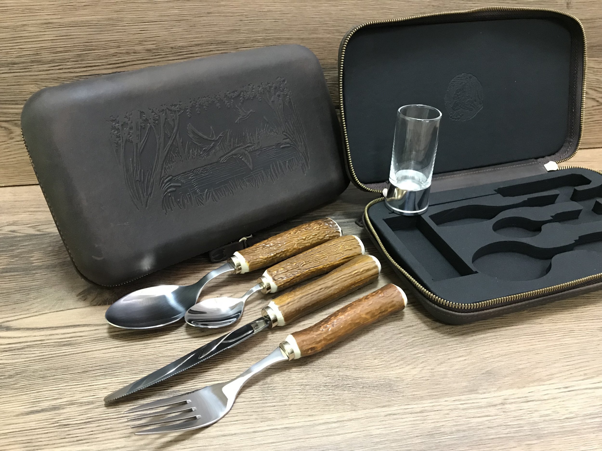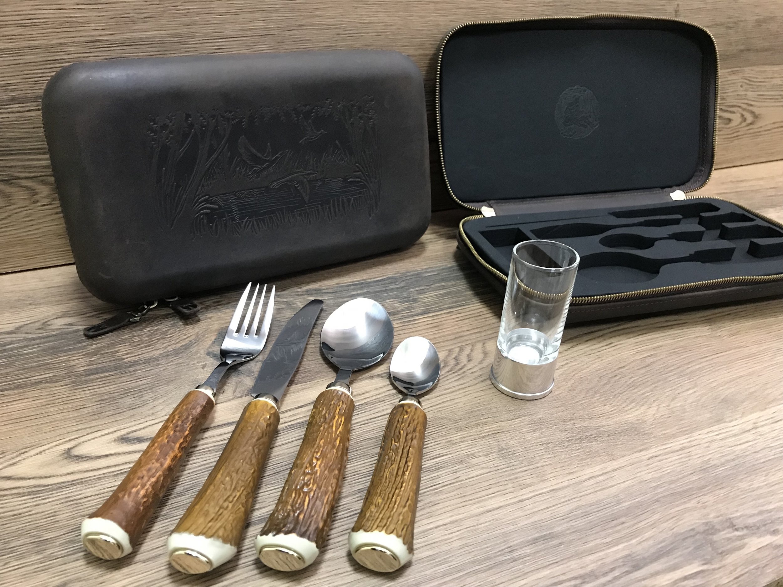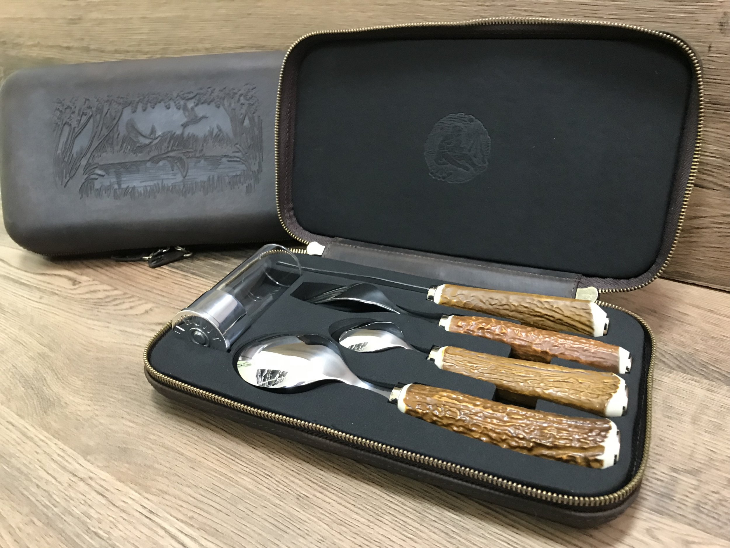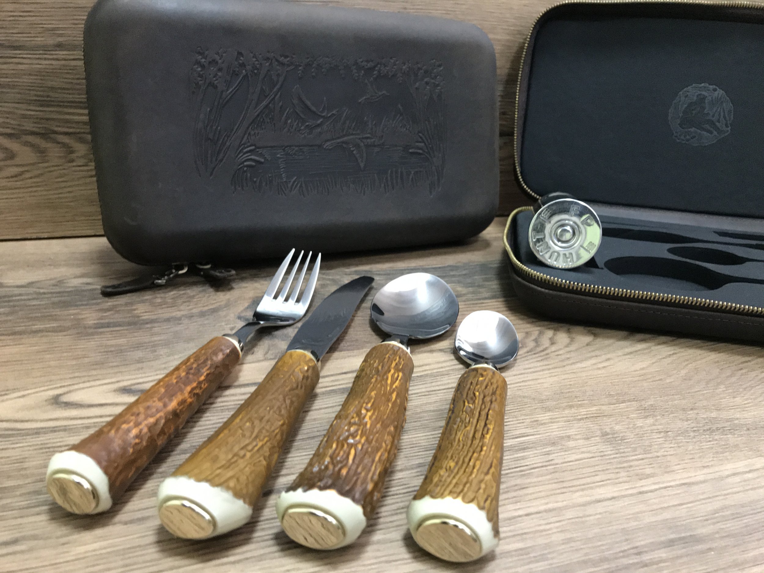 виделка, ніж, 2 ложки, ручки імітують ріг оленя