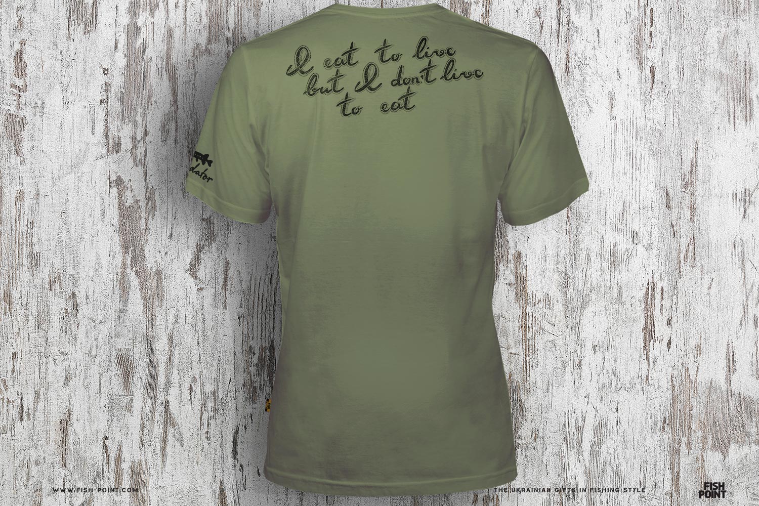 «Я їм аби жити, а не живу, аби їсти». Так живуть хижаки у природі. Про це нагадує оточуючим і напис на спині нашої футболки.